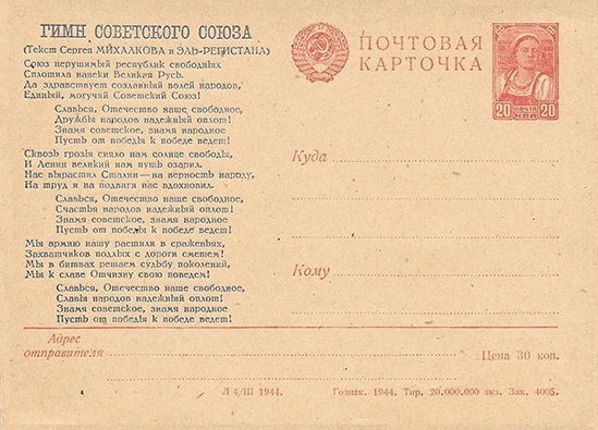 Писатель, поэт Сергей Михалков совместно с военным журналистом Георгием Эль-Регистаном написал текст Государственного гимна СССР, который впервые был исполнен в новогоднюю ночь 1944 года. До этого гимном Союза был «Интернационал» — французская песня, посвященная Парижской коммуне.