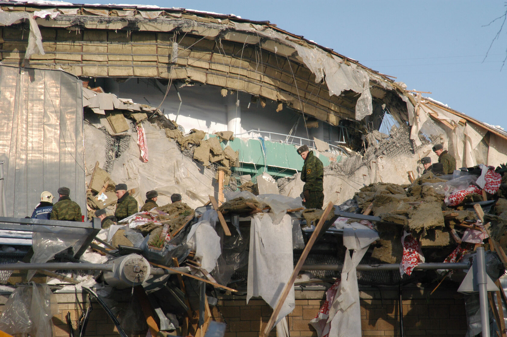 14 февраля в восьмом часу вечера в комплексе «Трансвааль-парк» на юго-западе столицы обрушился стеклянный купол. В момент аварии в аквапарке находилось до 1300 человек, 28 погибли. В обрушении крыши аквапарка обвинили архитектора Нодара Канчели. Через два года – 23 февраля 2006-го – рухнула кровля Басманного рынка, также сконструированная Канчели.
