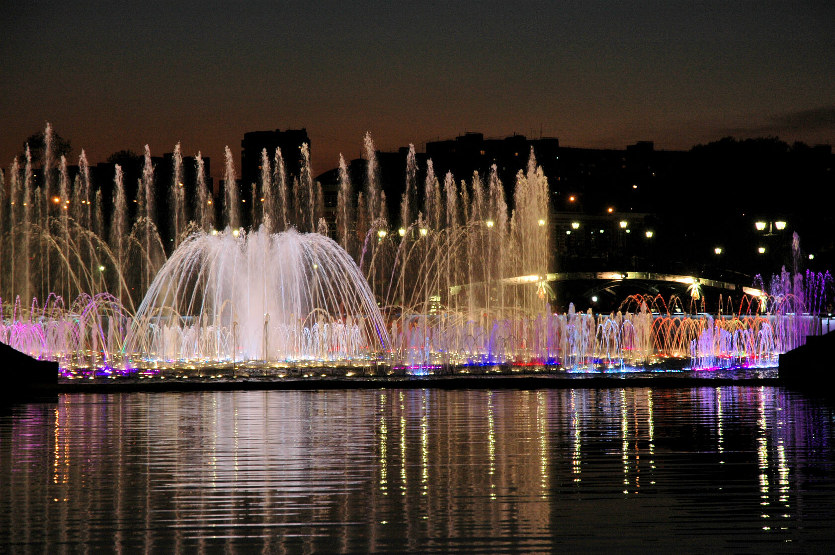 29 апреля 2007-го в акватории Царицынского пруда торжественно открыли светомузыкальный фонтан — один из самых больших в столице. Диаметр сооружения — 52 метра, все 915 струй могут подниматься на высоту до 15 метров в такт музыкальному и световому оформлению.